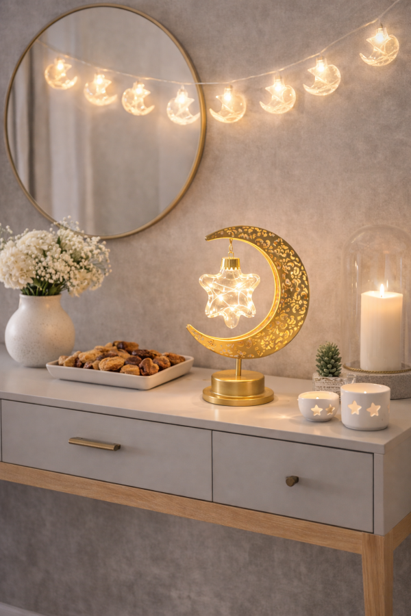 A fusion of moonlight and starlight in one lamp. Perfect addition to your Ramadan and Eid décor.
